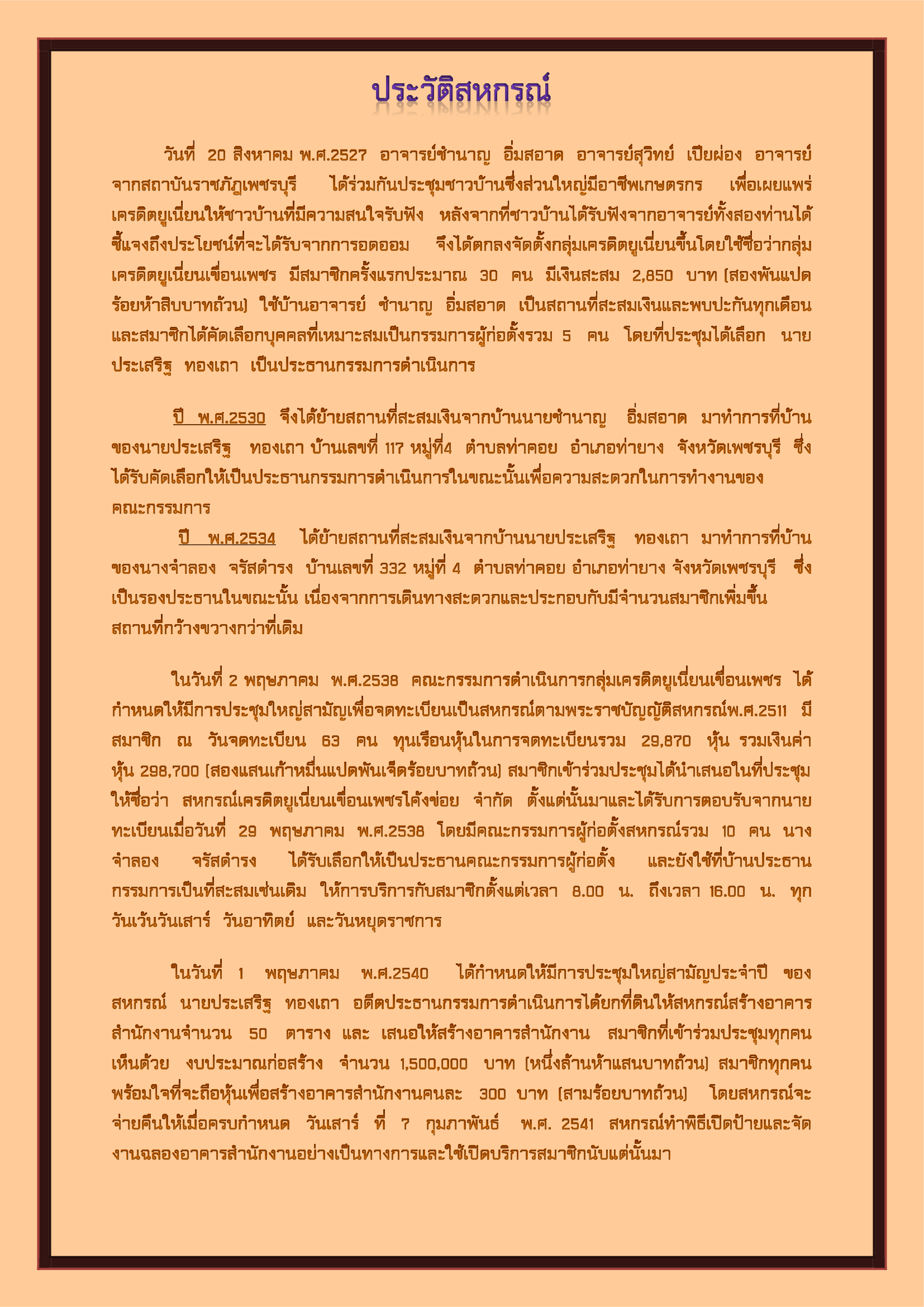 เรื่อง : ประวัติสหกรณ์