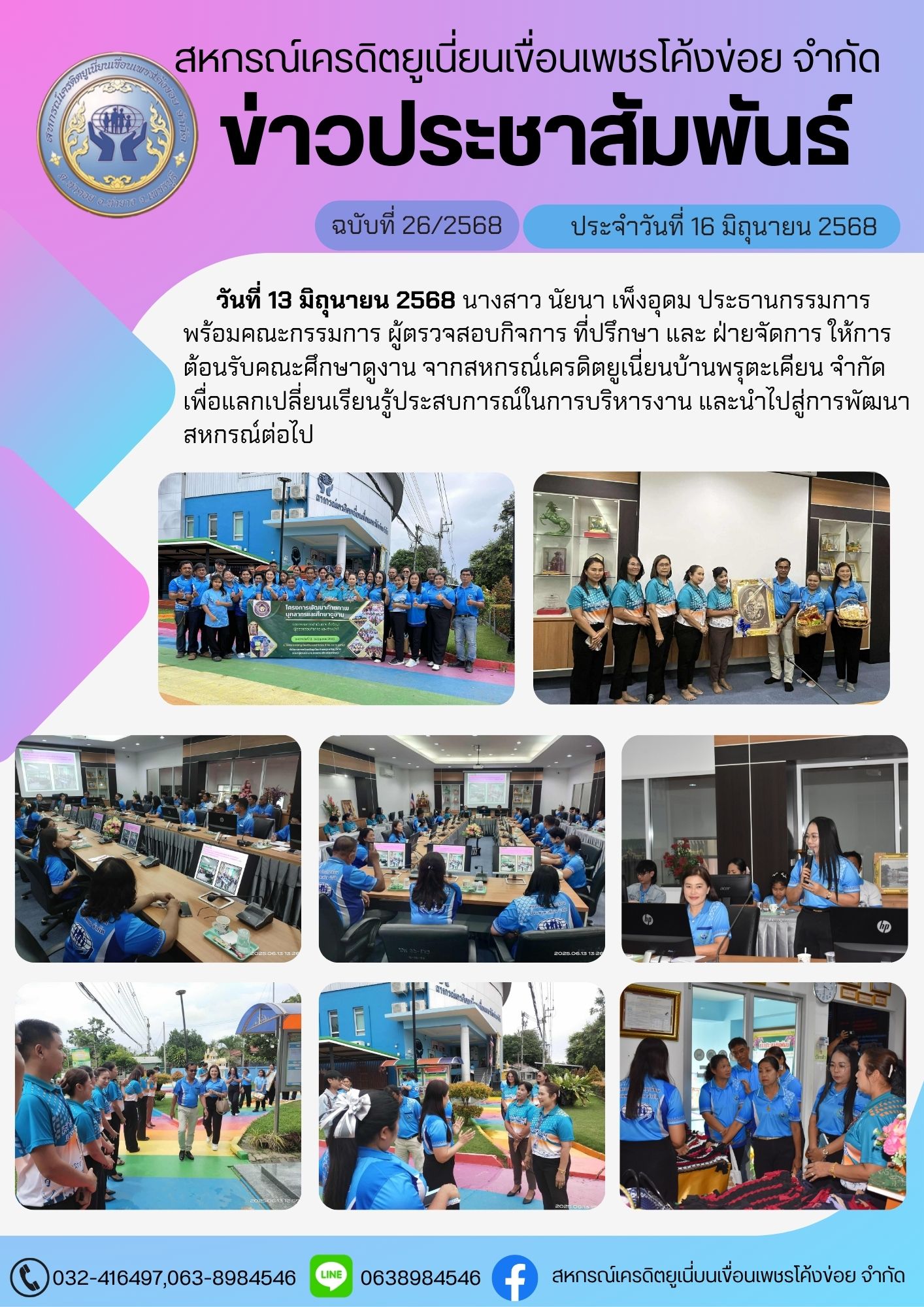 เรื่อง : ต้อนรับคณะศึกษาดูงาน จากสหกรณ์เครดิตยูเนี่ยนบ้านพรุตะเคียน จำกัด