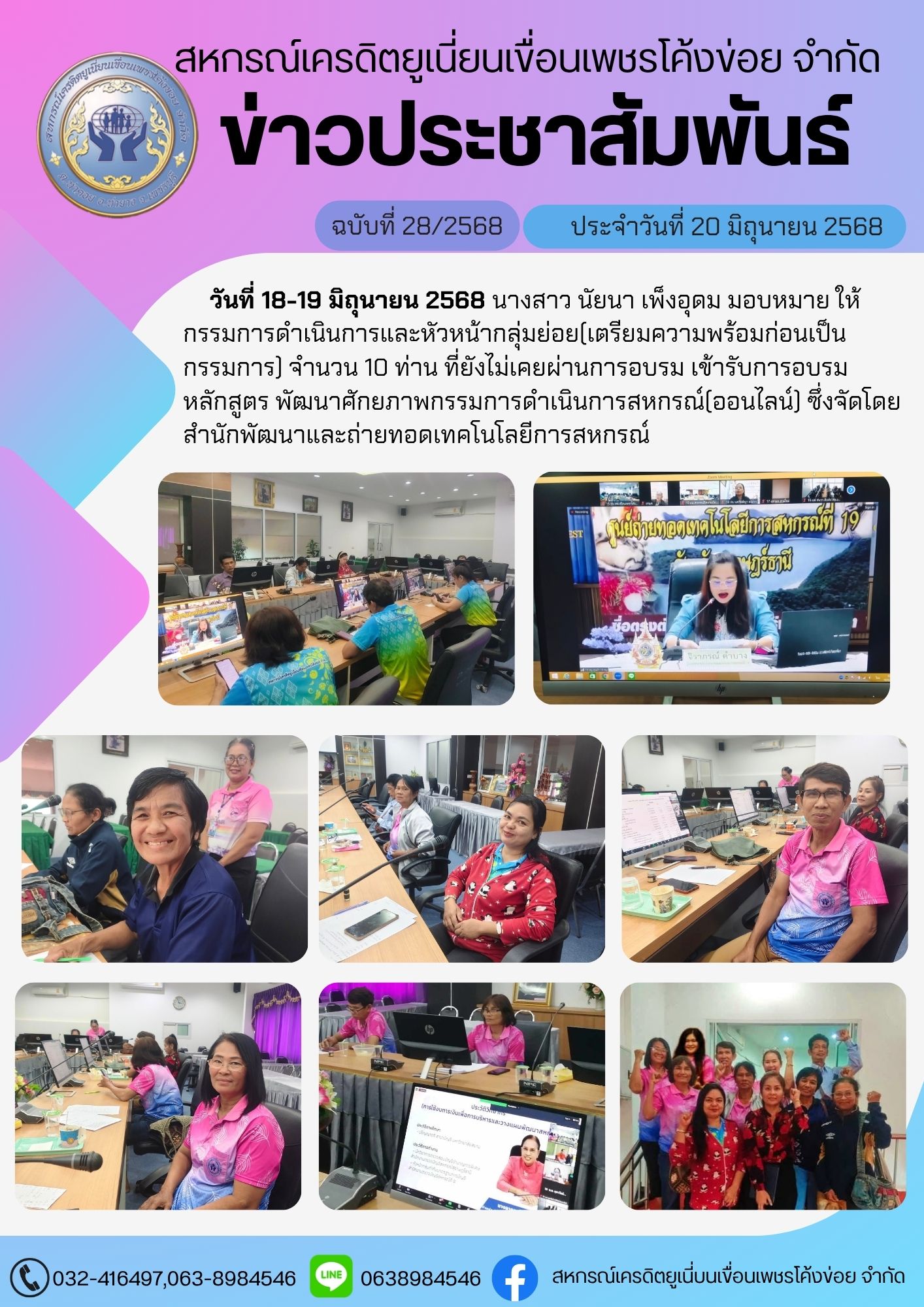 เรื่อง : อบรม หลักสูตร พัฒนาศักยภาพกรรมการดำเนินการสหกรณ์(ออนไลน์) ซึ่งจัดโดย สำนักพัฒนาและถ่ายทอดเทคโนโลยีการสหกรณ์