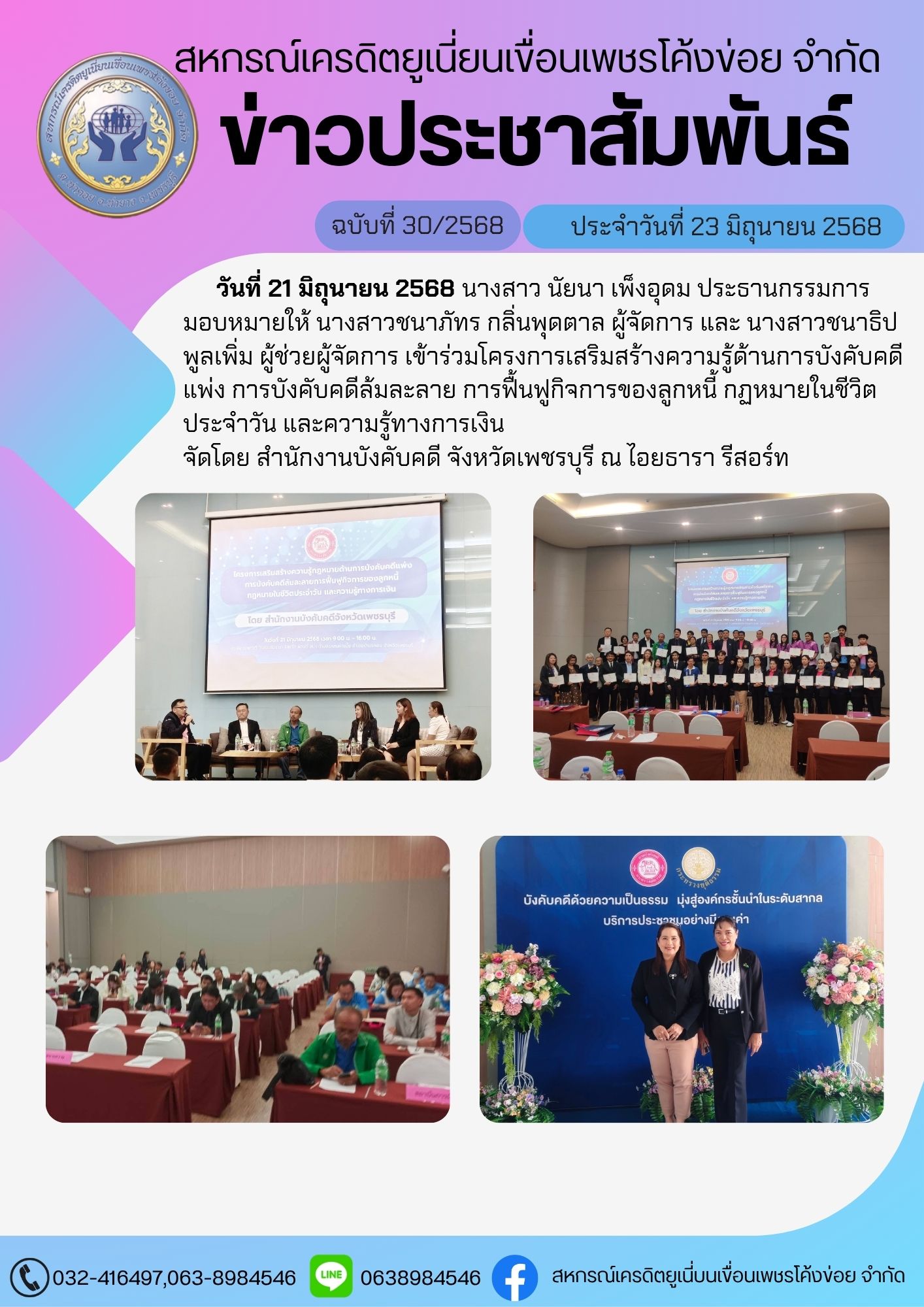 เข้าร่วมโครงการเสริมสร้างความรู้ด้านการบังคับคดีแพ่ง การบังคับคดีล้มละลาย การฟื้นฟูกิจการของลูกหนี้ กฏหมายในชีวิตประจำวัน และความรู้ทางการเงิน 24 / มิ.ย. / 2568